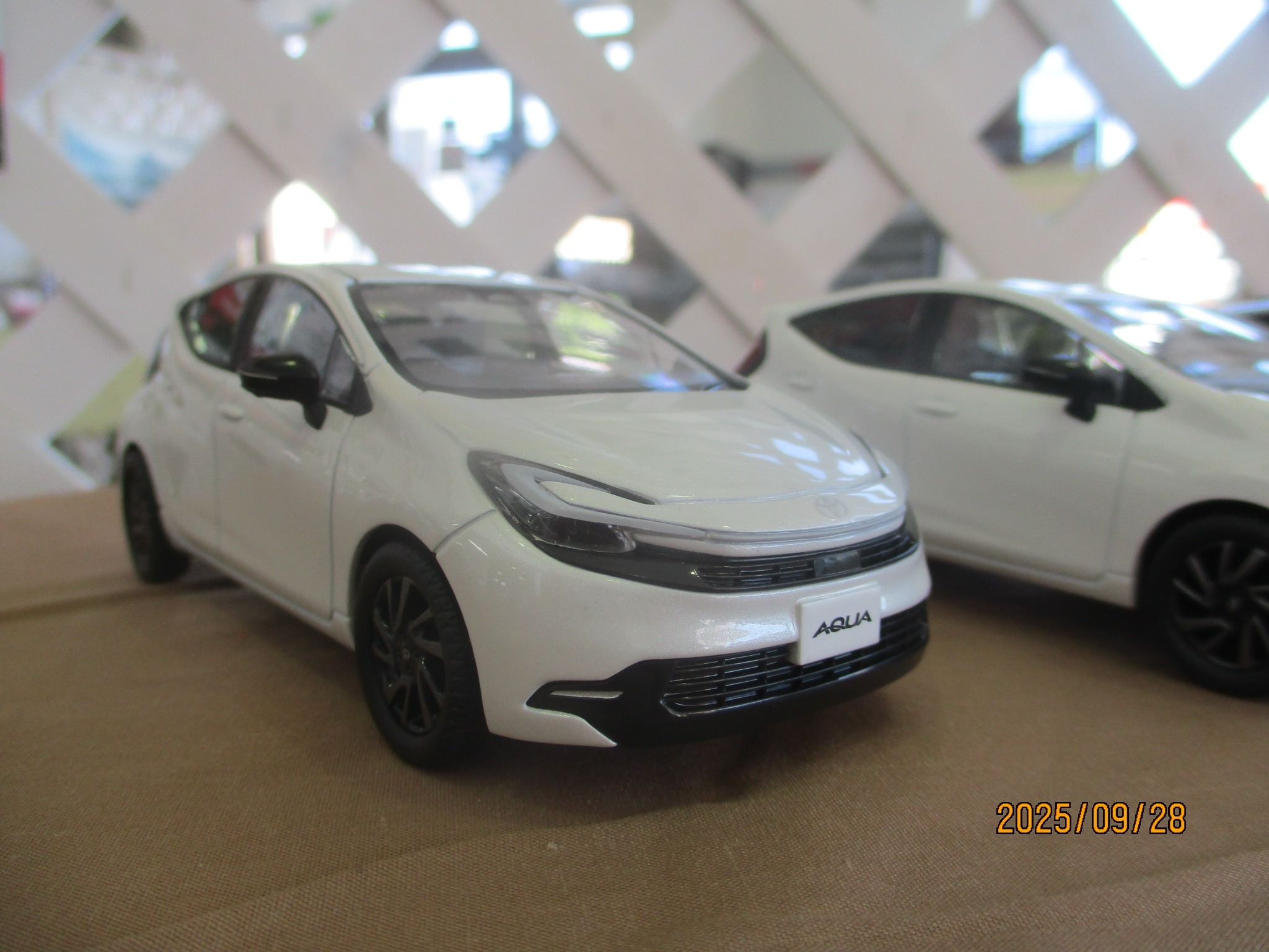画像はミニカーですが、アクアがマイナーチェンジをしフロントマスクが変わり、かなりスタイリッシュになりました。