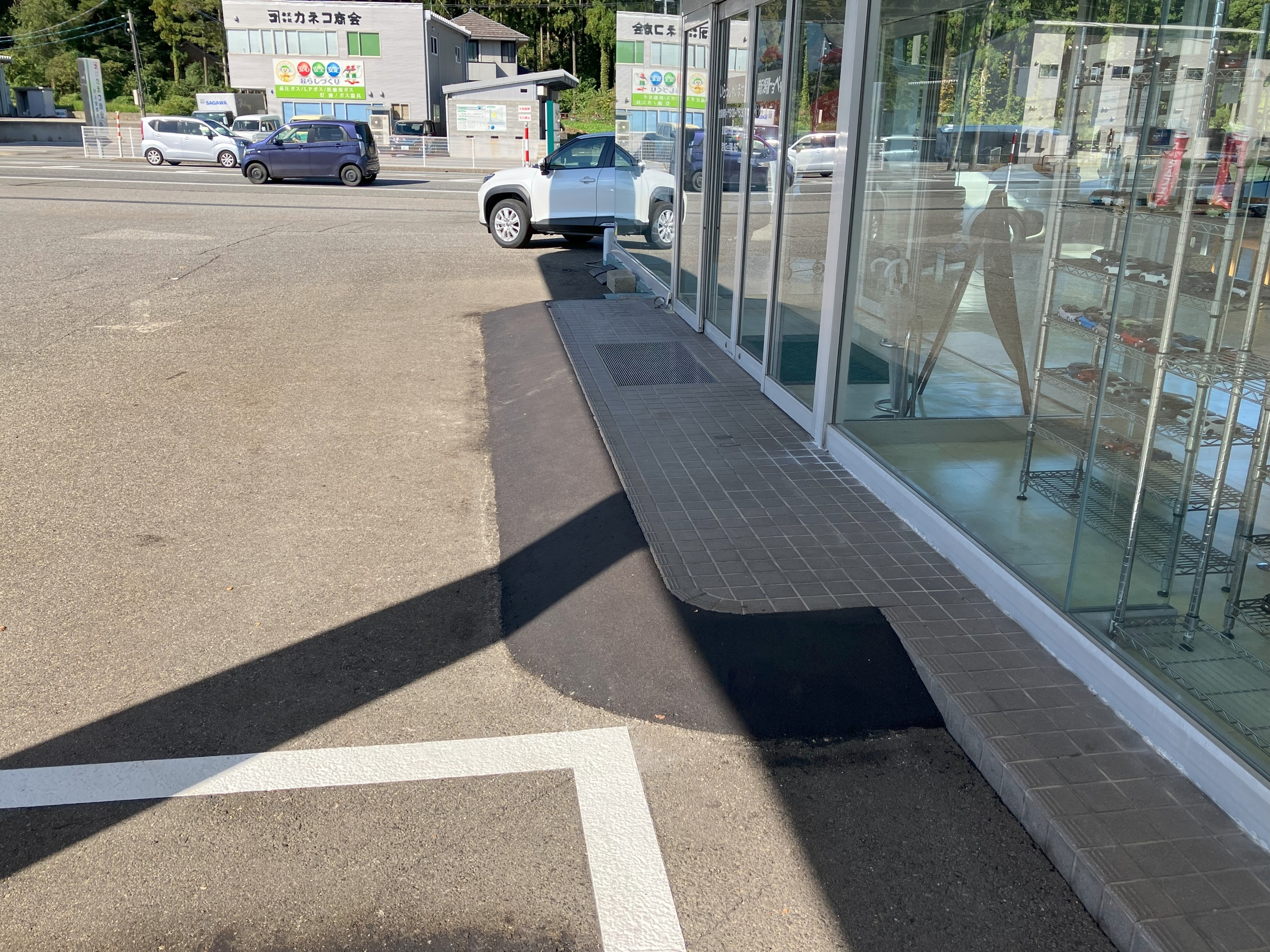 村上店の入り口は、実は段差があり入店される時や退店されるときつまずいたりして危なかったのですが、入り口の工事が完了して入退店しやすくなりました(#^.^#)!