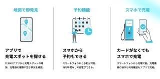 TEEMOアプリから最大60分間の取り置き予約→現地で最大30分充電が可能です。