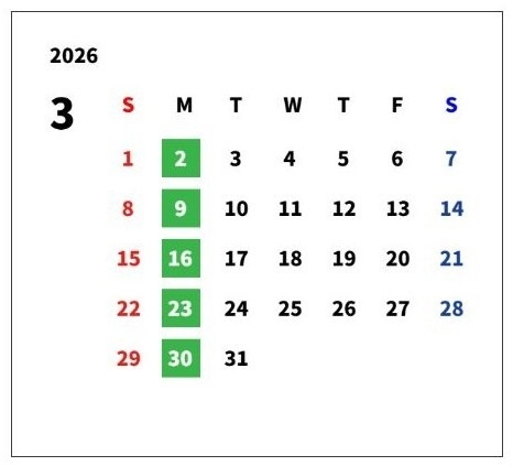 ●3月の定休日のお知らせ