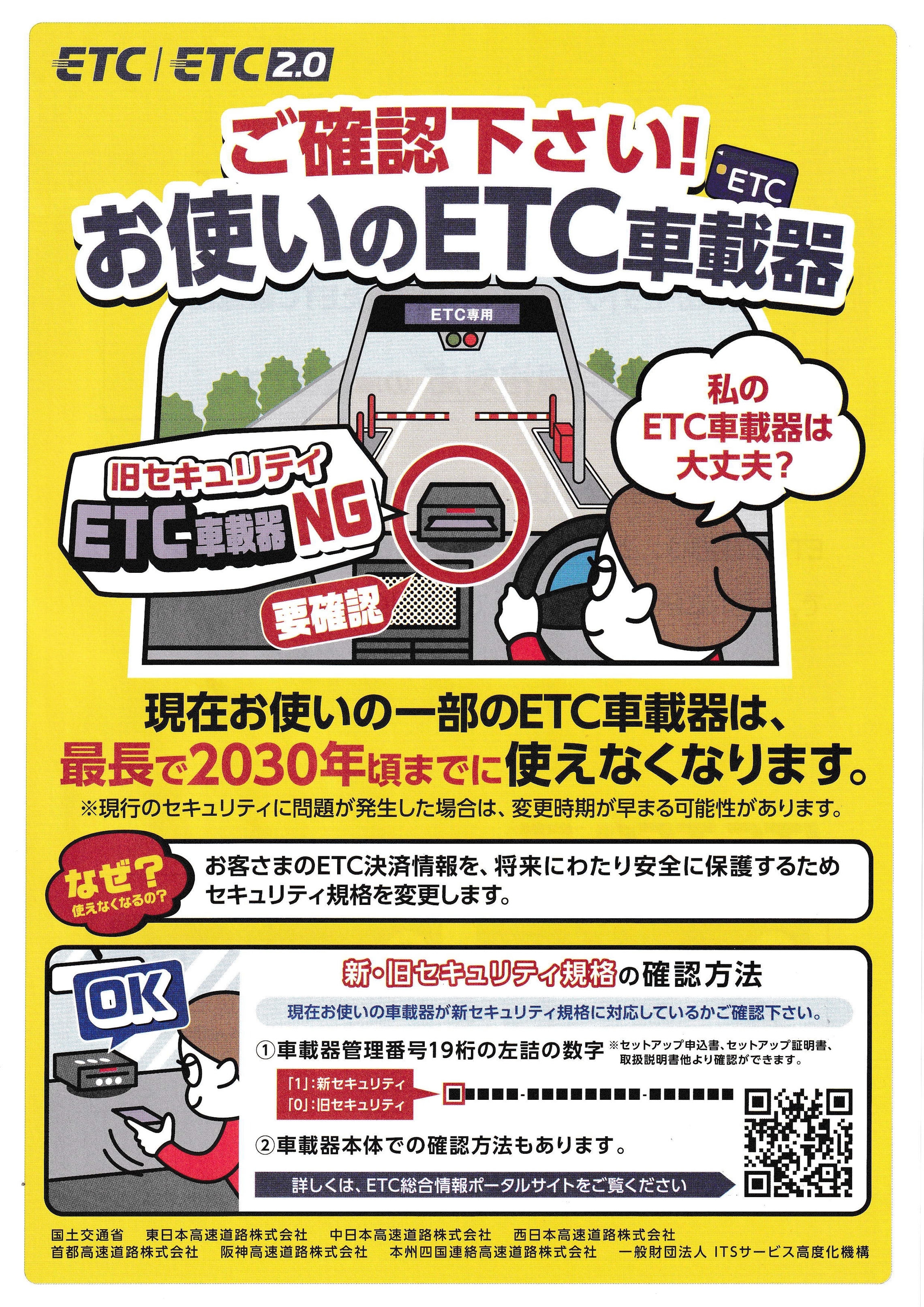 お客様のETC決済情報の安全保護のため、セキュリティ規格が変更になります