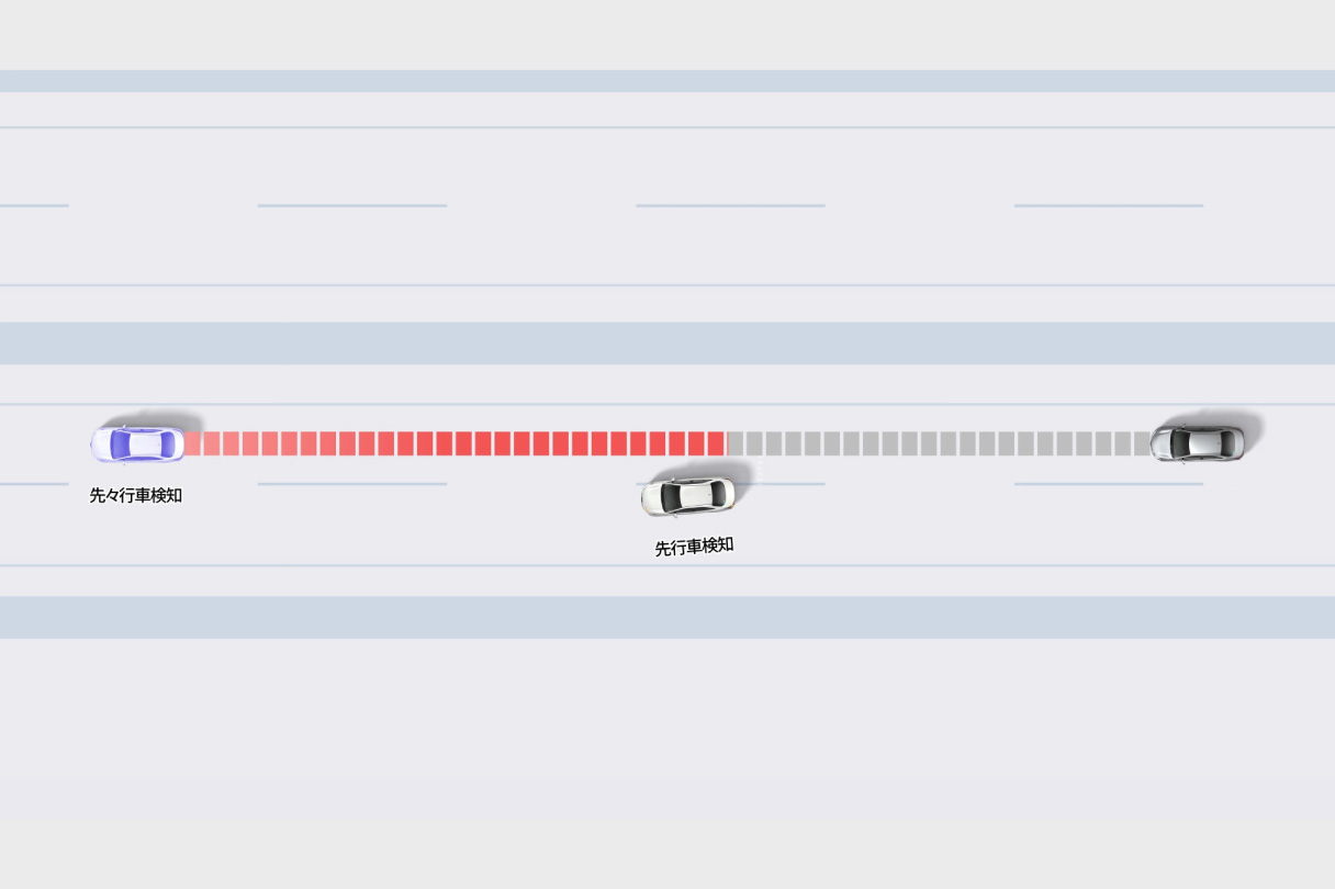 障害物がないシーンでも、ペダル踏み間違い時に加速を抑制。