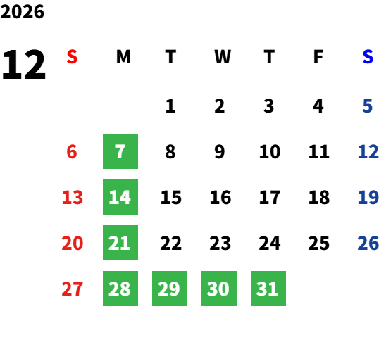 お世話になっております。 新潟トヨペット十日町店です。 早いものでもう年末ですね。 一年過ぎるのがあっという間です。 当社の年末年始休暇のお知らせです。 年末年始の休暇 12月28日㈰~1月3日㈯ 年明け1月4日㈰からの営業です。 当社は年末年始は完全に休暇となり、 事故・故障等には対応ができません。 万が一お急ぎの事態になりましたら、 ロードサービスのJAFをご利用ください。 JAFロードサービス TEL:0570ー00-8139 短縮ダイヤル #8139 皆さん良いお年をお迎えください。 また来年も新潟トヨペット十日町店を よろしくお願い致します。